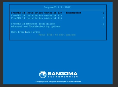 Trình cài đặt sẽ bắt đầu bằng một dấu nhắc để chọn Phiên bản Asterisk và FreePBX mà bạn muốn cài đặt