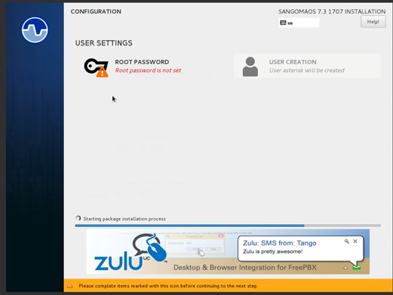 Tại thời điểm này, gói FreePBX có thể mất 15 phút hoặc hơn để cài đặt và không yêu cầu truy cập internet, do đó tùy thuộc vào tốc độ internet của bạn, có thể mất một lúc để cài đặt.