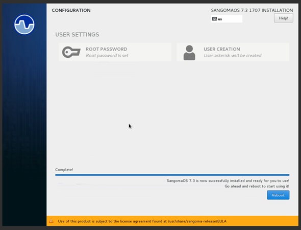 Khi quá trình cài đặt hoàn tất 100%, nó sẽ cung cấp cho bạn tùy chọn khởi động lại như hình bên dưới. Nhấp vào Reboot khởi động lại hệ thống của bạn đã được cài đặt.