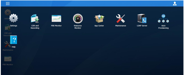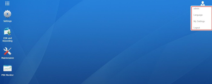 Khi đăng nhập vào Yeastar S-Series Web GUI,bạn sẽ thấy desktop. Từ đây, bạn có thể quản lý cài đặt, cài đặt ứng dụng xem thông tin tài nguyên hệ thống.