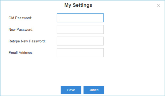 Nhấp vào My Settings để thiết lập cài đặt tài khoản. Ở đây bạn có thể thay đổi mật khẩu đăng nhập và địa chỉ email liên kết với tài khoản của bạn. - Logout