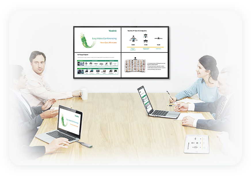 Người dùng có thể trải nghiệm tính năng trên thiết bị Yealink WPP20, bạn có thể trình chiếu hoặc chia sẻ màn hình của mình chỉ với 1 click. Điều này mang lại sự thuận tiện trong lúc cuộc họp diễn ra,