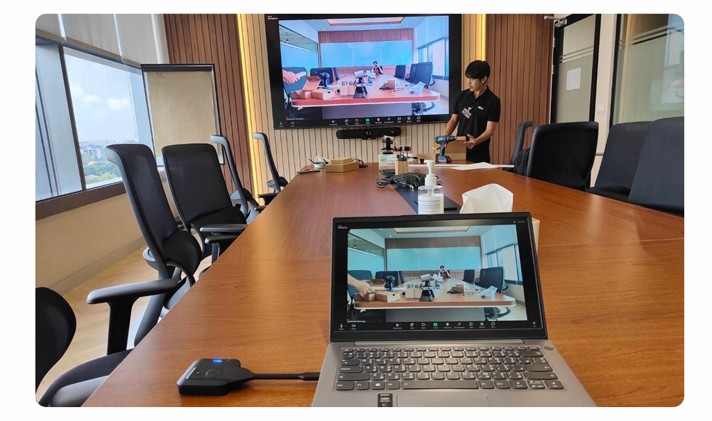 Toàn bộ hình ảnh, âm thanh và dữ liệu sẽ được đồng bộ với hệ thống phòng họp.
