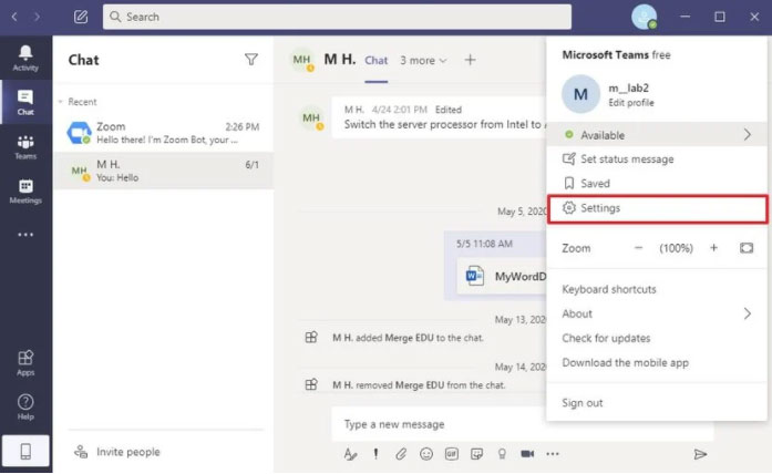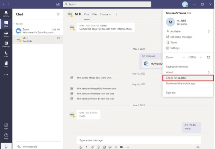 Để kiểm tra bản cập nhật của Microsoft Teams thực hiện theo các bước sau: