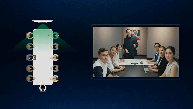 Được hỗ trợ với các công nghệ AI tiên tiến bao gồm nhận diện khuôn mặt, vị trí nguồn âm thanh, theo dõi giọng nói, v.v., máy ảnh sẽ tự động điều chỉnh các giải pháp tạo khung hình tốt nhất theo số lượng và vị trí của người tham gia. Cận cảnh thời gian thực với người trình bày và các thao tác thủ công cho phép tất cả những người tham dự tập trung tốt vào cuộc họp.