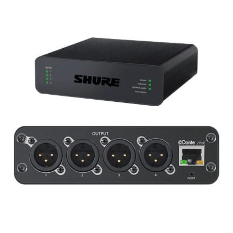 Shure ANI4OUT-XLR là thiết bị giao diện mạng âm thanh chuyên nghiệp thuộc dòng sản phẩm Microflex® Advance™ của Shure, cho phép truyền tín hiệu âm thanh kỹ thuật số Dante™ đến 4 kênh đầu ra analog thông qua kết nối XLR tiêu chuẩn. Thiết bị được thiết kế nhỏ gọn, dễ dàng tích hợp vào các hệ thống âm thanh hiện đại trong các phòng họp, hội nghị và các ứng dụng AV chuyên nghiệp khác, mang đến hiệu suất âm thanh ổn định và đáng tin cậy.