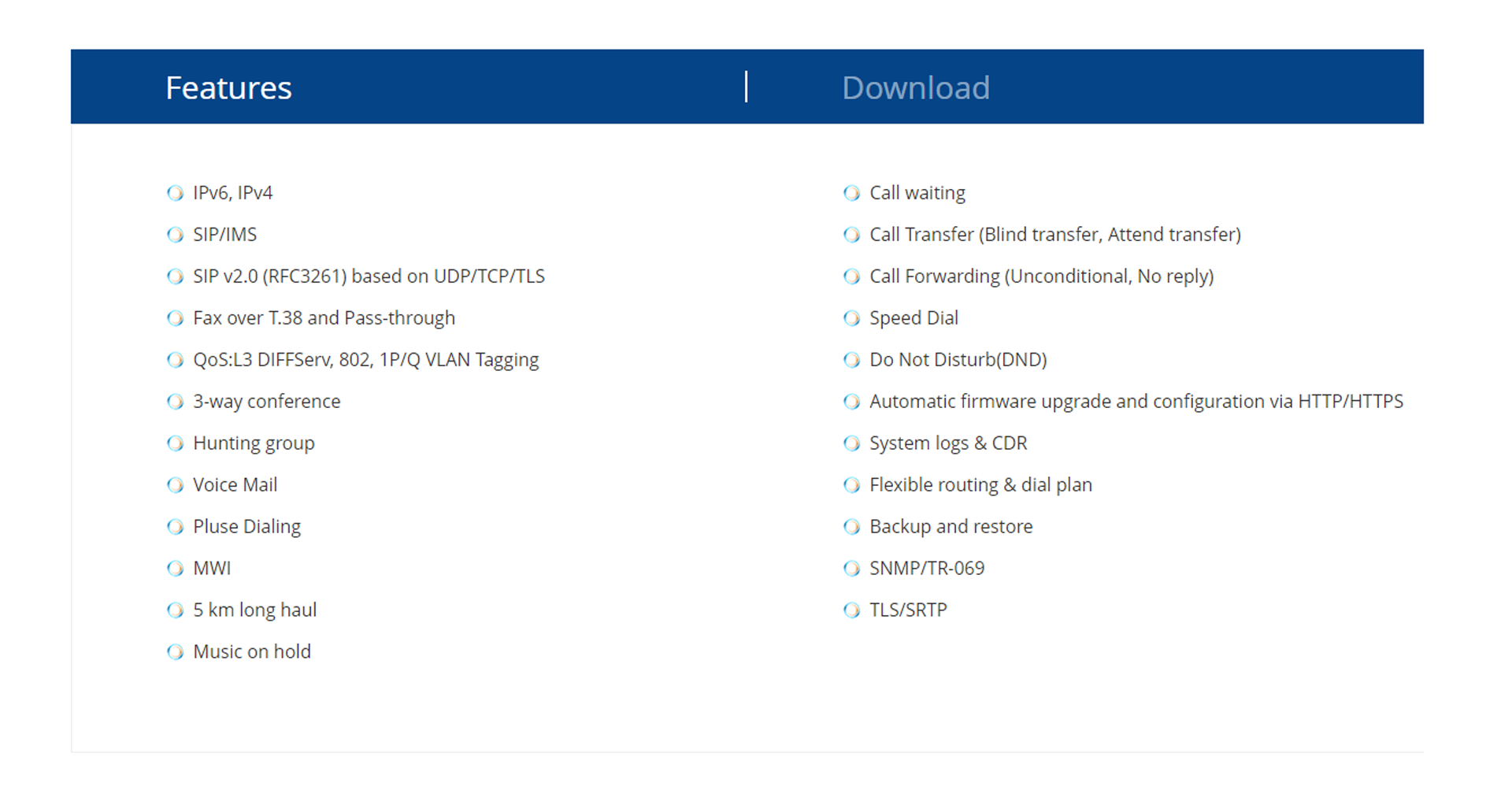 - Tương thích với các công tắc softswitch, IP-PBX và máy chủ SIP hàng đầu