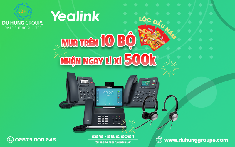 Bước sang năm mới 2021 tràn đầy niềm tin, Yealink cùng đồng hành với các đối tác, khách hàng và cùng chung vui một mùa Xuân mới. Yealink tổ chức chương trình “CÙNG YEALINK HÁI LỘC ĐẦU NĂM“. Khi quý khách hàng, đối tác mua trên 10 bộ điện thoại, tai nghe Yealink, sẽ nhận được bao lì xì trị giá 500k.