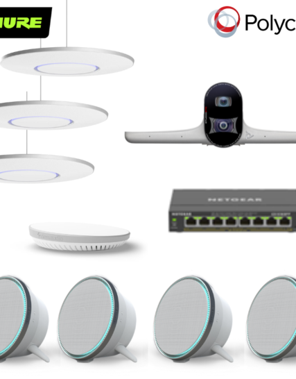 Bộ thiết bị hội nghị HuddleP1 (Poly EagleEye Cube, Shure Stem Ceiling, Wall, Hub và Switch POE)