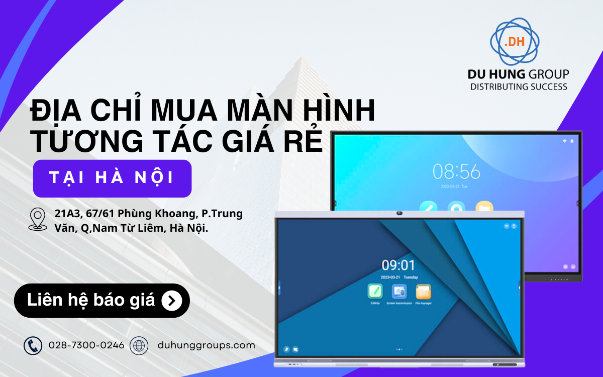 Trên đây là địa điểm cung cấp màn hình tương tác thông minh uy tín, chính hãng tại Hà Nội, mọi thông tin chi tiết vui lòng liên hệ đến Du Hưng theo số điện thoại 028-7300-0246 để được hỗ trợ nhanh và tốt nhất.