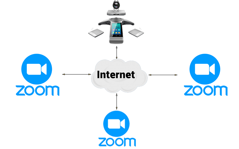 Triển khai thiết bị hội nghị hỗ trợ đa điểm tại trụ sở chính thường dành cho những phòng họp lớn, thiết bị sẽ xuất hình ảnh ra màn hình. Ở những điểm nhánh, các nhân viên, quản lý, lãnh đạo sẽ sử dụng phần mềm Zoom, kết hợp với thiết bị như di động, laptop, máy tính bảng,….