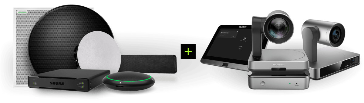 Các giải pháp của Yealink & Shure đem đến giải pháp hoàn hảo cho mọi không gian họp từ phòng nhỏ đến phòng cực lớn. Người dùng có thể chọn một camera khác cho video và mic để bàn, mic trần hoặc mic mảng tuyến tính cho các nhu cầu âm thanh khác nhau.