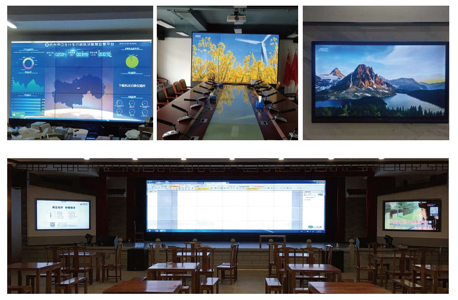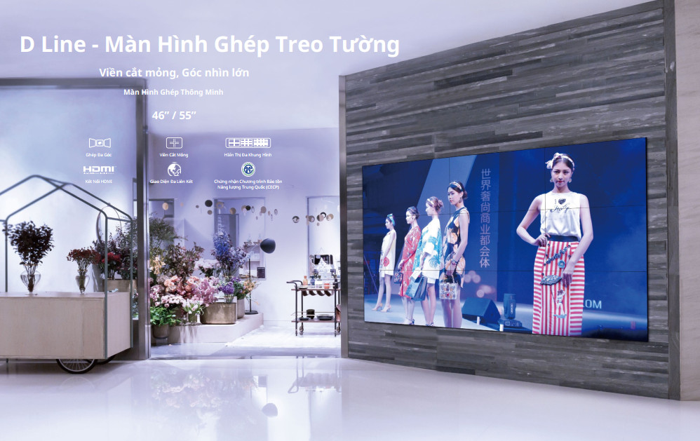 D Line – Màn Hình Ghép Treo Tường AOC Viền cắt mỏng, Góc nhìn lớn hỗ trợ hoạt động liên tục 24/7, tuổi thọ của màn hình công nghệ cao có thể đạt tới 50.000 giờ, kết hợp với chức năng chống cháy màn hình thông minh.
