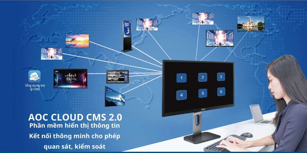 Phần mềm Phần mềm hiển thị thông tin Kết nối thông minh AOC CLOUD CMS 2.0 giúp dễ dàng thực hiện việc phát sóng một-nhiều video, hình ảnh độ phân giải cao và các nội dung khác qua mạng dựa trên đám mây, cung cấp các giải pháp phân phối thông tin cho nhiều ngành.