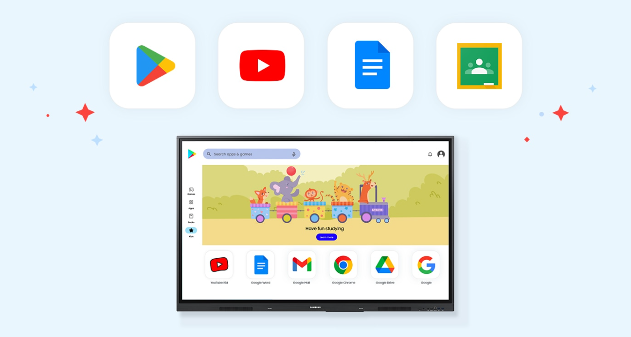 Màn hình tương tác samsung WA65D là sản phẩm thuộc dòng màn hình tương tác WAD của Samsung với kích thước 65 inch mang đến trải nghiệm người dùng quen thuộc và trực quan. WA65D hoạt động dựa trên hệ điều hành Android, cung cấp nhiều tiện ích và màn hình chính có thể tùy chỉnh dễ dàng. Chiếc màn hình tương tác samsung WA65D này cũng được chứng nhận EDLA hỗ trợ các dịch vụ như Google Play, YouTube và Google Classroom, Có thể hiển thị đồng thời nhiều màn hình để thực hiện đa nhiệm dễ dàng.