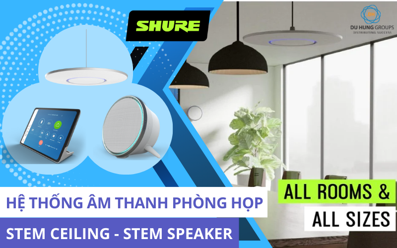 Nhằm nâng cao chất lượng âm thanh phòng họp, việc lắp đặt các thiết bị loa, micro hội nghị chất lượng cho phòng họp là điều cần thiết. Trong các thương hiệu âm thanh nổi tiếng, Shure – một thương hiệu âm thanh phòng họp cao cấp đến từ Mỹ với giá thành vô cùng phải chăng rất được các doanh nghiệp và tổ chức ưa chuộng sử dụng. Hệ thống âm thanh phòng họp Shure Stem Ceiling – Stem Speaker cho phép bạn tạo vùng phủ sóng chất lượng cao hoàn hảo cho mọi phòng họp.