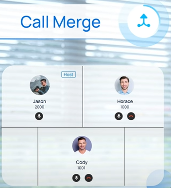 Với tính năng Yeastar Call Merge, bạn có thể dễ dàng tạo cuộc gọi hội nghị âm thanh ba chiều bằng cách hợp nhất hai cuộc gọi riêng biệt và của bên thứ ba lại với nhau.