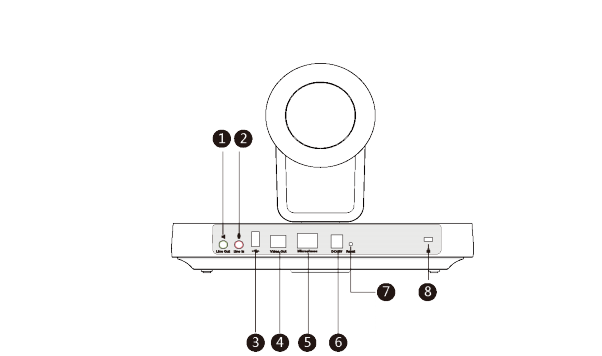(1) Line Out: Kết nối với thiết bị đầu ra âm thanh bằng giắc cắm 3.5mm