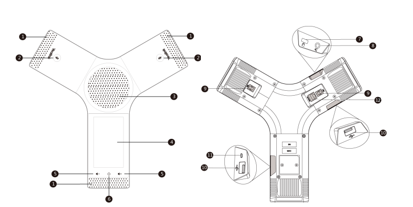 (1) Tích hợp 3 micro: Cung cấp phạm vi phủ sóng 20 feet và 360 độ để truyền âm thanh đến các điện thoại khác.