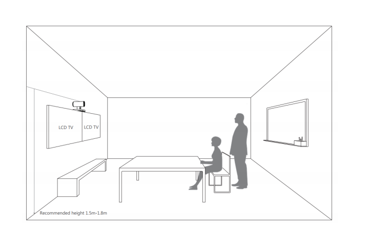 • Cài đặt TV LCD và máy quay video so với trung tâm của những người tham gia. Đảm bảo rằng những người tham gia đối mặt trực tiếp với máy ảnh và TV LCD trong khi gọi.