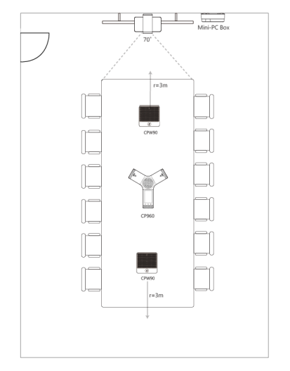 Gợi ý cách triển khai Giải pháp Yealink CP960-UVC80 cho phòng họp vừa và lớn: