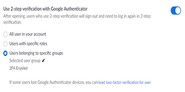 Sau khi bạn thực hiện thành công thì khi người dùng sử dụng zoom sẽ được kích hoạt lại chế bộ 2FA.