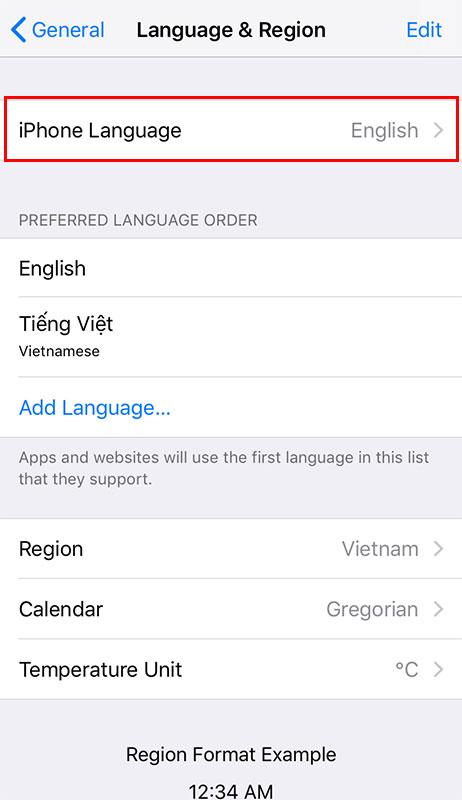 - Trong danh sách thì bạn chọn tiếng Việt.