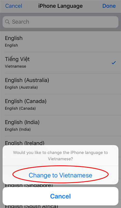 Tại danh sách ngôn ngữ, bạn chọn tiếng Việt.