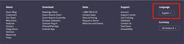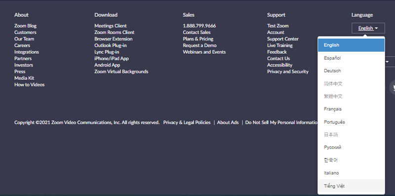 - Truy cập vào Zoom.us, kéo xuống dưới cùng.