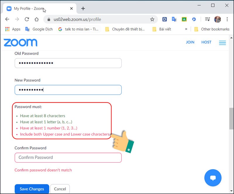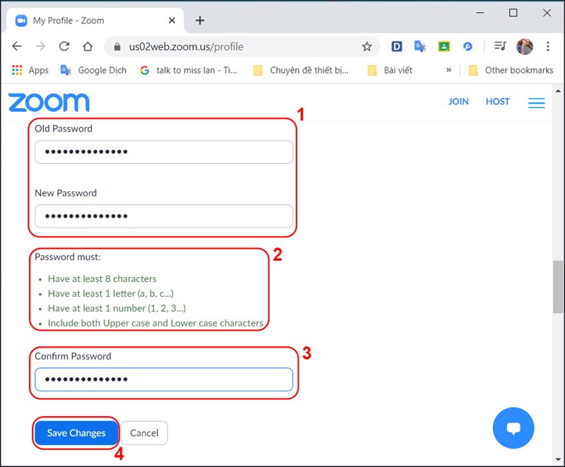 Hướng dẫn đổi mật khẩu trên Zoom.