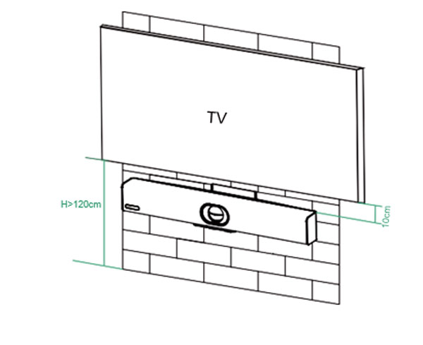 Gắn UVC40 bên dưới TV khi chiều cao lắp đặt của TV cao hơn 120 cm.