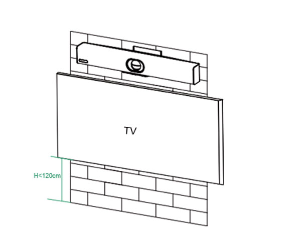 Gắn UVC40 lên trên TV khi chiều cao lắp đặt của TV thấp hơn 120cm.