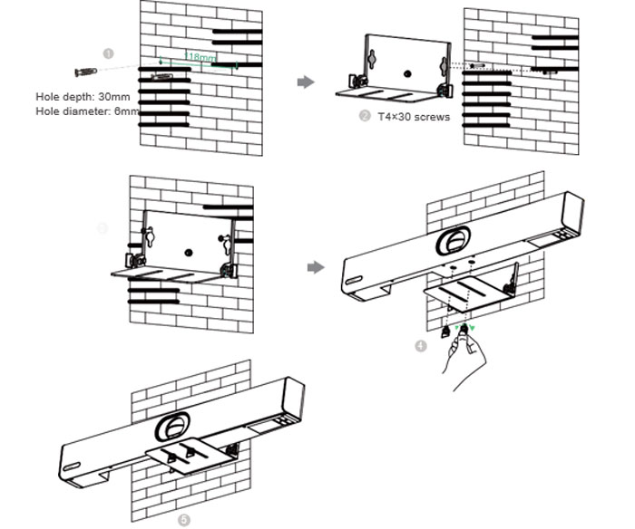 Sử dụng giá đỡ để gắn điểm cuối của máy lên tường. Chiều cao lắp đặt ảnh hưởng đến chế độ xem camera của bạn. Chiều cao khuyến nghị là 1,1m so với mặt đất.
