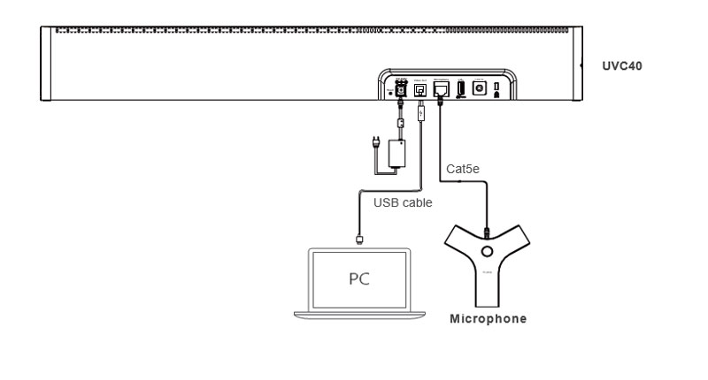 6. Line In: kết nối đầu nối âm thanh 3,5 mm để sử dụng UVC40 làm thiết bị đầu ra âm thanh.