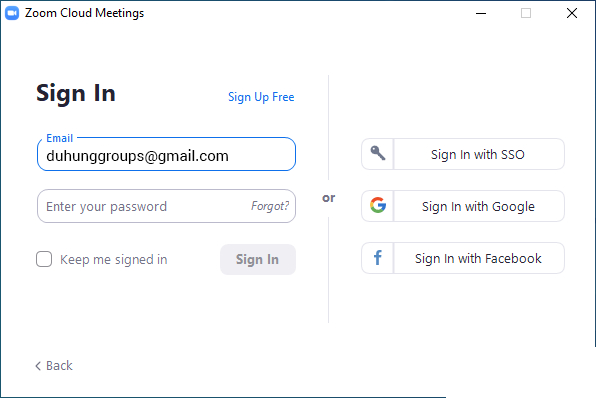 2. Giao diện bên dưới sẽ hiện ra tại đây bạn có thể đăng nhập vào Zoom nếu đã đăng ký tài khoản.