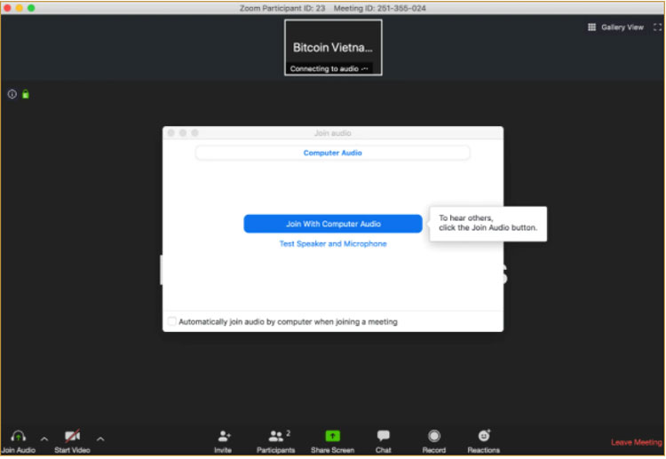 “Join with Computer Audio” – tham gia Zoom bằng âm thanh máy tính