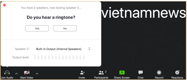 3.Màn hình kiểm tra mic và âm thanh, nếu bạn nghe thấy âm thanh thì bấm vào YES là được.