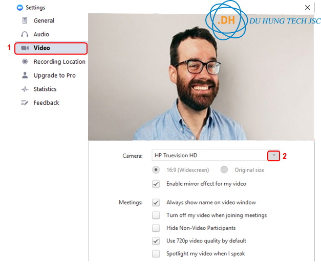 Hãy chọn thiết bị camera phù hợp trong hộp thả xuống nếu đúng thiết bị thì hình ảnh sẽ hiển thị, với trường hợp sử dụng camera ngoài thì bạn nên kiểm tra lại cổng kết nối nữa thiết bị bạn sử dụng và camera.