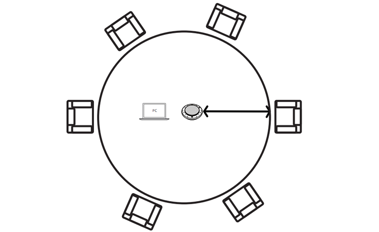 Đặt loa ngoài ở giữa bàn, cách mỗi người tham gia tối đa 2m / 6,5ft. CP900 lý tưởng cho tối đa 6 người
