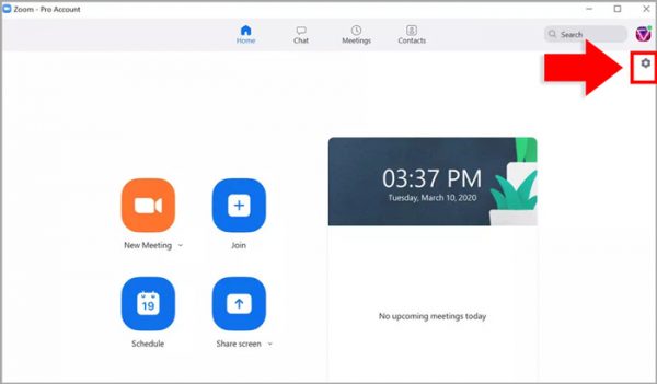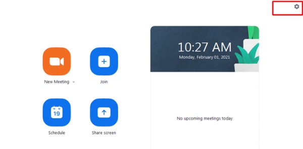 • Bước 1: Khởi động ứng dụng Zoom và nhấp vào biểu tường cài đặt