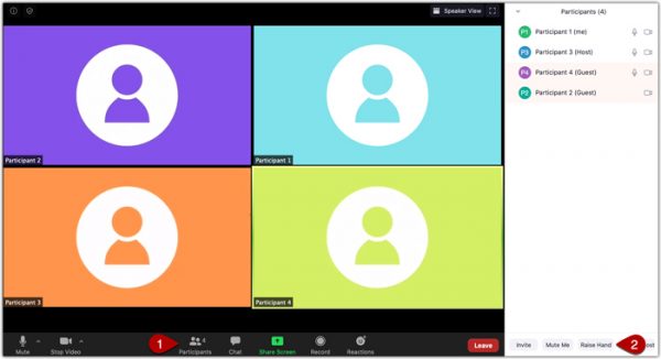 • Nhấp chuột vào Participants, ở bên phải màn hình sẽ thấy nút Raise Hand ở phía dưới.
