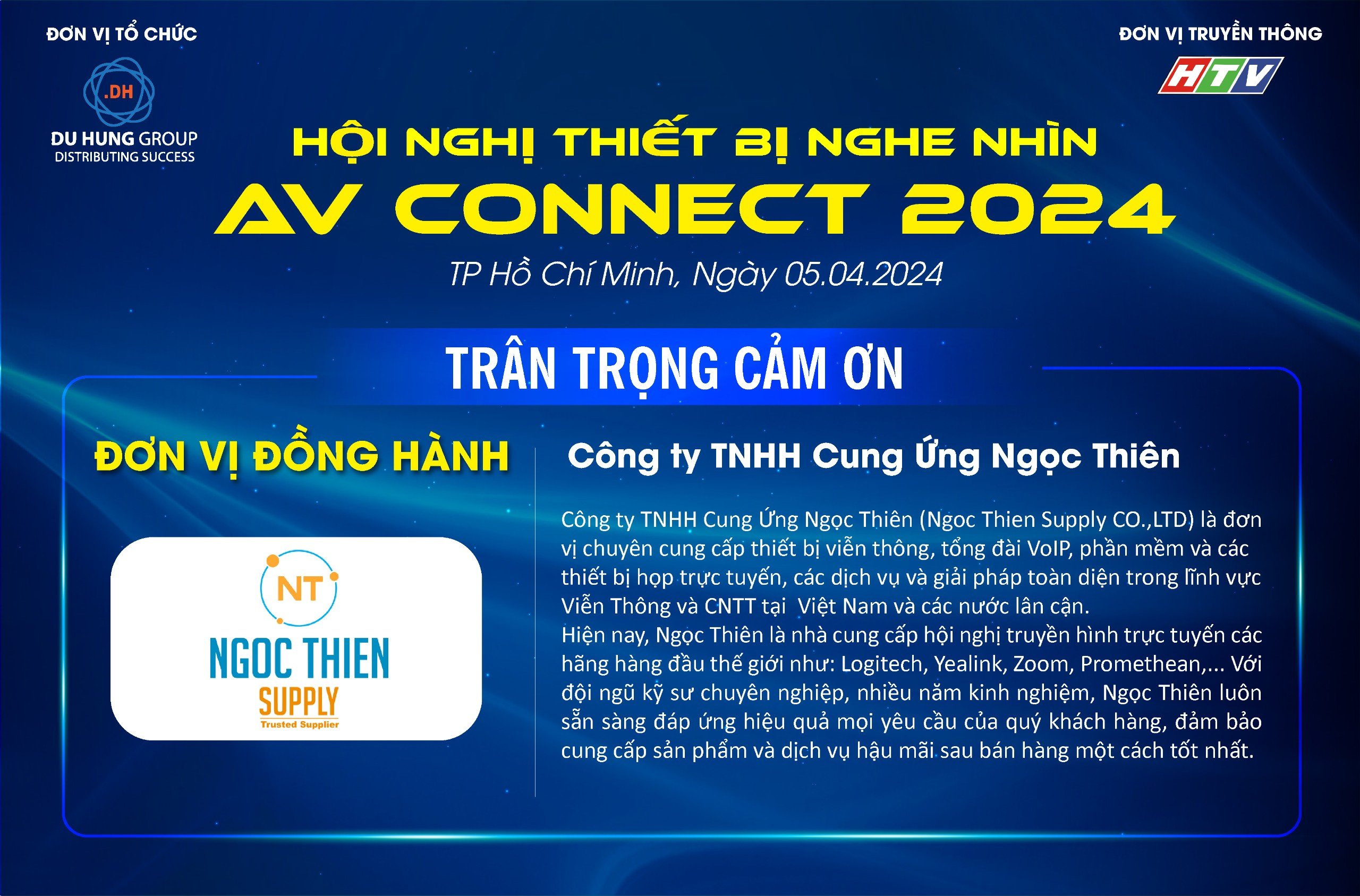 Để sự kiện “AV CONNECT 2024 – Hội nghị thiết bị nghe nhìn” được diễn ra quy mô và thành công không thể thiếu sự đồng hành của các nhà tài trợ. Du Hưng rất hân hạnh được đồng hành cùng “Đơn vị đồng hành – Ngọc Thiên “