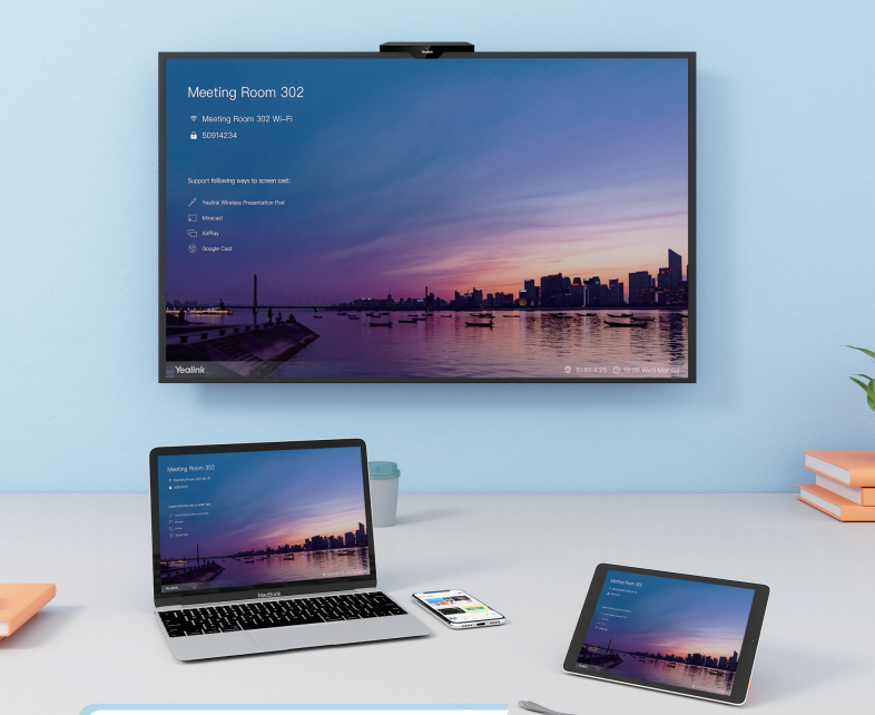 Tương thích với Windows, Mac, iOS, Android và các hệ điều hành khác, Yealink RoomCast cũng hoạt động tốt với các loại thiết bị đầu cuối bao gồm PC, máy tính bảng và điện thoại thông minh trực tiếp mà không cần bất kỳ ứng dụng nào để truyền không dây. RoomCast cho phép người dùng tận hưởng chia sẻ một chạm để cộng tác dễ dàng và hiệu quả với Yealink Wireless Presentation Pod, Miracast, AirPlay và Google Cast.