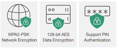Chỉ truyền nội dung truyền trong mạng LAN, Yealink RoomCast bảo vệ dữ liệu và quá trình truyền WPA2-PSK và mã hóa 128-bit AES. Để ngăn chặn sự gián đoạn từ những người dùng trái phép và giữ cho cuộc họp diễn ra ổn định và an toàn, hệ thống Yealink RoomCast cũng hỗ trợ xác thực mã PIN cho Miracast và AirPlay.