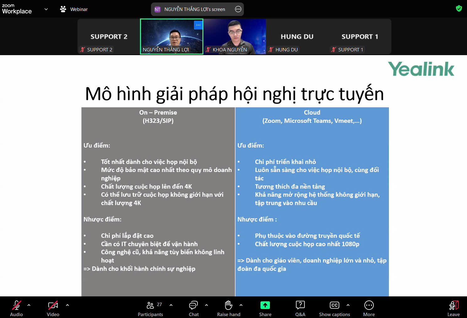 Vào ngày 06/05/2025 vừa qua, Du Hưng kết hợp cùng với Yealink đã tổ chức thành công buổi Webinar về chủ đề: “Giải Pháp Hội Nghị Trực Tuyến Dành Cho Khối Chính Phủ”. Buổi hội thảo diễn ra với những chia sẻ đầy cuốn hút từ diễn giả Mr. Nguyễn Thắng Lợi – Product Manager Yealink. Buổi Webinar này được thực hiện với mong muốn giúp cho mọi người hiểu hơn về các giải pháp hội nghị truyền hình dành cho khối chính phủ.