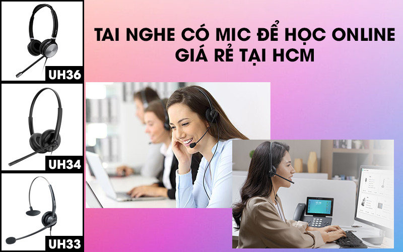 Khi học tiếng anh, học online thì ngoài nghe âm thanh, lời giảng từ giáo viên, bạn cũng cần phải tương tác và trao đổi bài học với giáo viên, Do đó, khi mua tai nghe để hỗ trơ cho việc học bạn cần lựa chọn mẫu tai nghe có tích hợp micro để tiện cho việc sử dụng. Dưới đây là một vài những mẫu tai nghe có mic giá rẻ của thương hiêu Yealink.