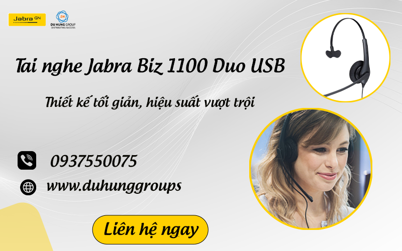 Với thiết kế tối giản, trọng lượng nhẹ và công nghệ chống ồn tiên tiến, Jabra Biz 1100 Duo USB không chỉ mang đến trải nghiệm âm thanh tuyệt vời mà còn giúp người dùng thoải mái sử dụng trong thời gian dài. Bài viết này, Du Hưng sẽ phân tích chi tiết các đặc điểm nổi bật, lợi ích và lý do tại sao tai nghe Jabra Biz 1100 Duo USB là lựa chọn lý tưởng cho các doanh nghiệp và cá nhân làm việc trực tuyến.