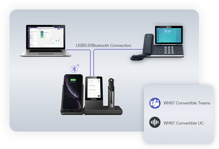 Yealink WH67 cung cấp cho người dùng khả năng và sự linh động nhằm kết nối các thiết bị và quản lý việc giao tiếp một cách hiệu quả từ những thiết bị riêng lẻ.