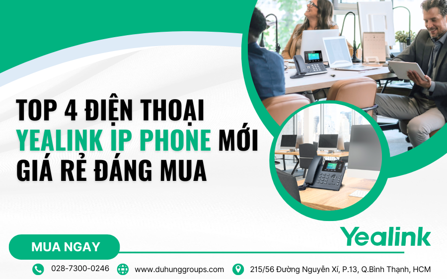Yealink là thương hiệu nổi tiếng trong lĩnh vực thiết bị viễn thông với các dòng sản phẩm nổi bật với chất lượng cao và giá cả hợp lý. Nếu bạn đang tìm kiếm một chiếc điện thoại IP Phone giá rẻ nhưng đầy đủ tính năng, Yealink là sự lựa chọn hàng đầu! Với các tính năng mạnh mẽ, thiết kế hiện đại và giá thành phải chăng, các dòng Yealink IP Phone là sự lựa chọn lý tưởng cho mọi doanh nghiệp. Hãy cùng Du Hưng điểm qua Top 4 điện thoại Yealink IP Phone mới giá rẻ đáng mua.