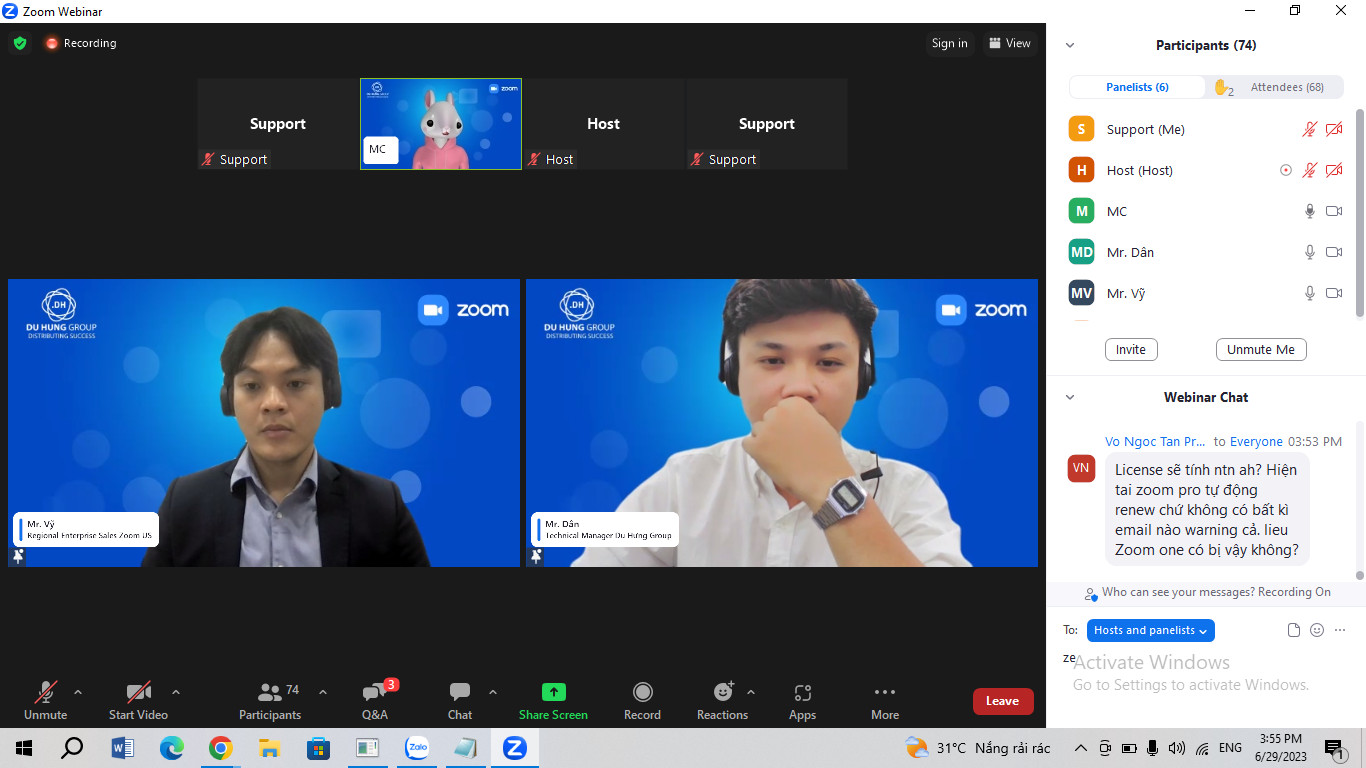 Vào ngày 29/6/2023 vừa qua, Du Hưng đã tổ chức thành công buổi Webinar về chủ đề: “Tiết Kiệm & Tăng Hiệu Quả Kinh Doanh Trong Môi Trường Kinh Tế Khó Khăn Với Zoom One“. Buổi hội thảo diễn ra với những chia sẻ đầy cuốn hút từ diễn giả Mr.Vỹ – Regional Enterprise Sales Zoom Us và Mr.Thế Dân – Technical Manager Du Hưng Group.